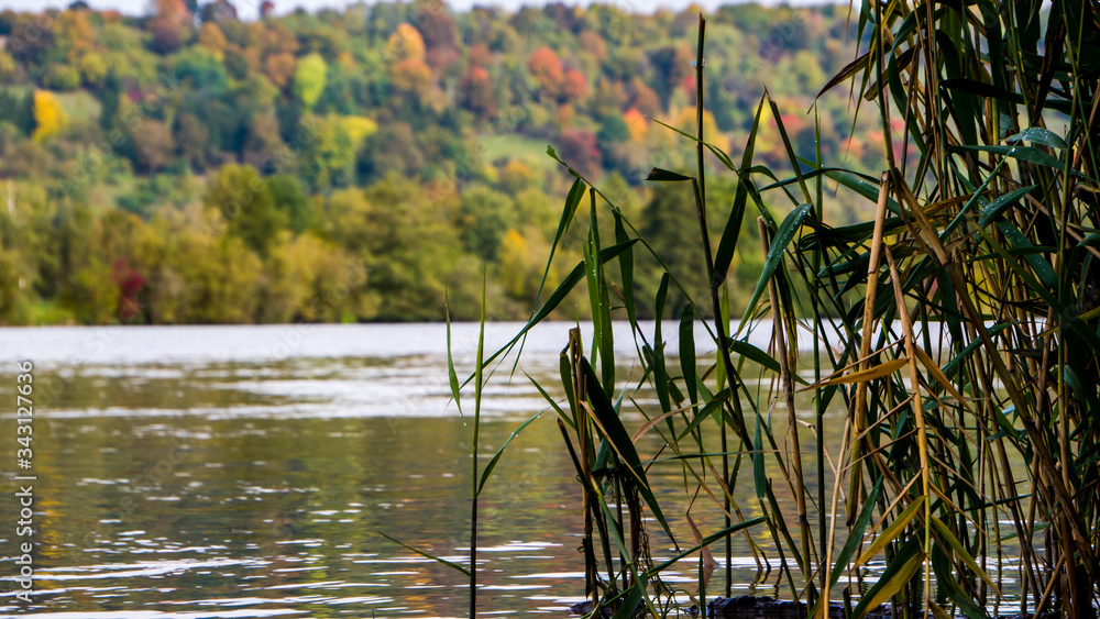 Wunderschöne goldene Herbstlandschaft bei Sonnenschein in Regensburg an der Donau