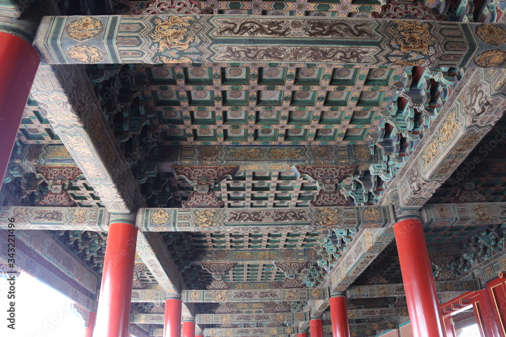 Plafond d'un pavillon de la Cité Interdite à Pékin, Chine