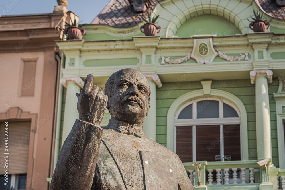Close up of a statue at the end of the shopping area in downtown Novi Sad Serbia