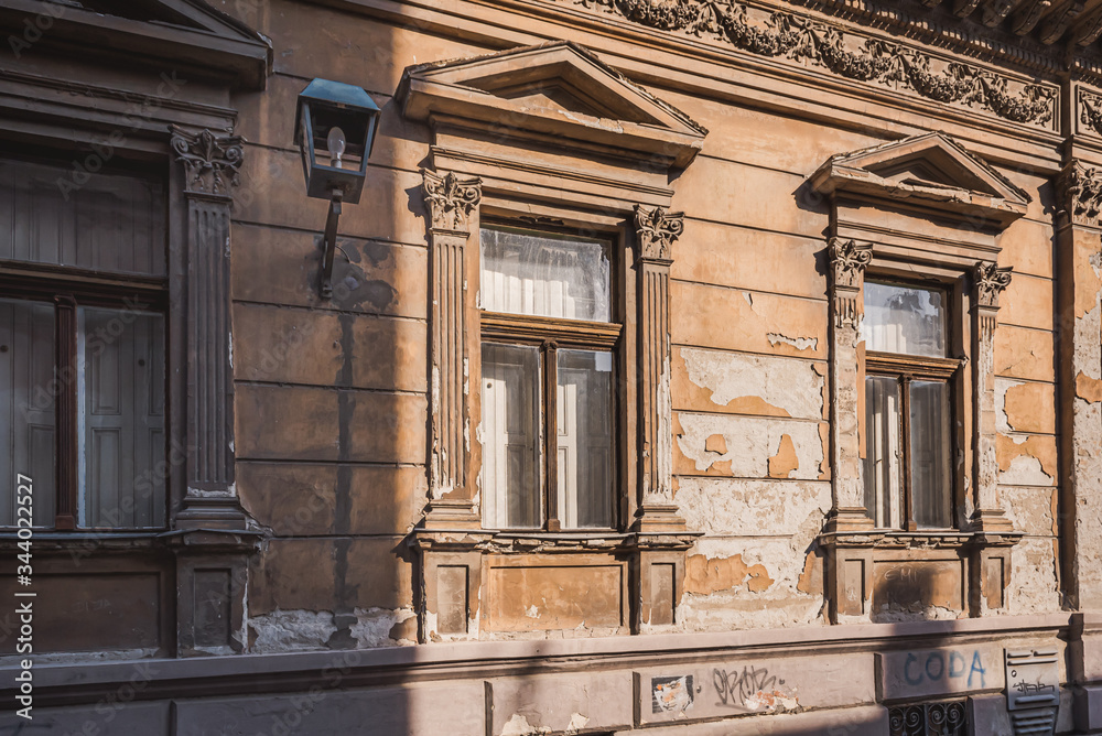 Rustic windows on an ornate baroque style building
