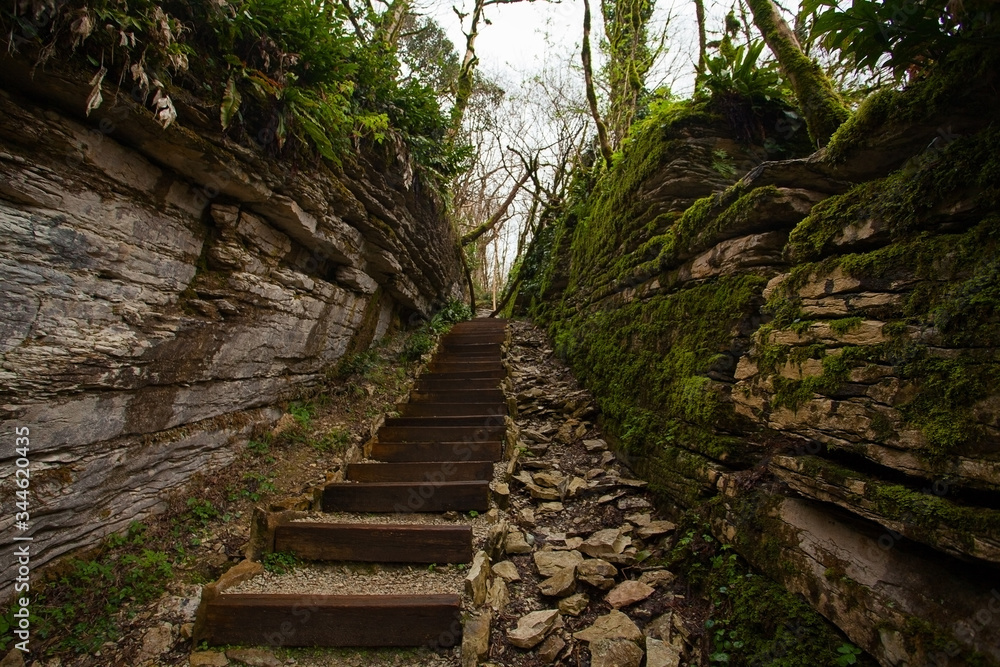 beautiful forest mountain landscape in autumn in sochi in boxwood grove