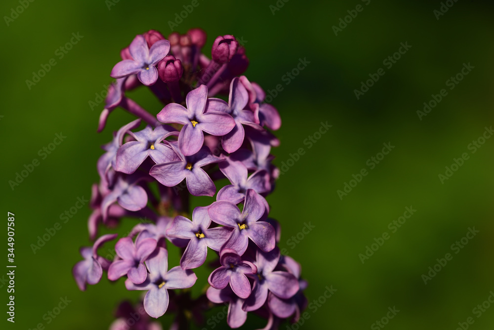 Close-up of a lilac purple flower in spring, against a green background