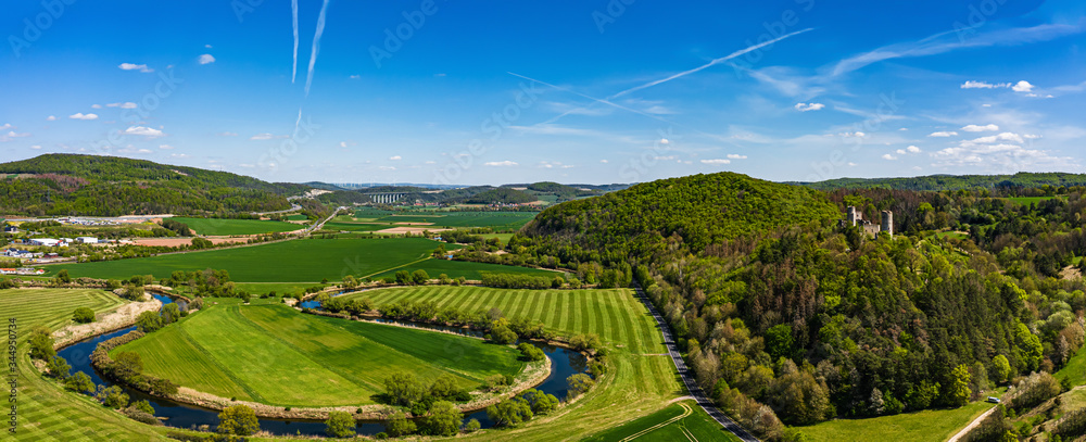 Das Werrathal, Werra Schleife(Kuchenschieber und Hut) bei Herleshausen mit der Brandenburg