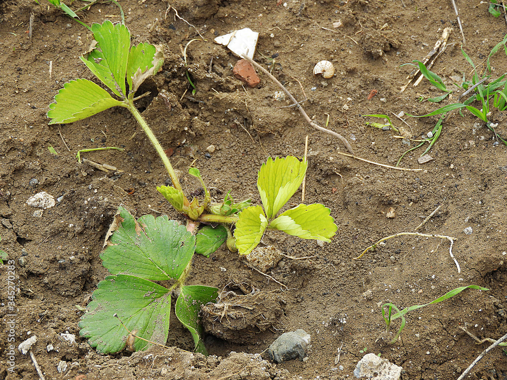 strawberry seedlings planted in the garden, growing strawberries in the hobby garden, strawberry plant,