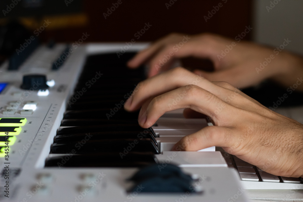 dedos produciendo música a través de un teclado tecnológico