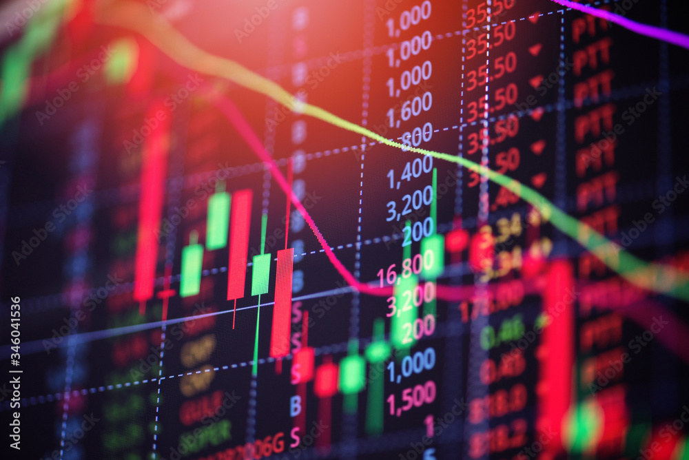 Stock market exchange loss trading graph analysis investment indicator business graph charts of financial board display candlestick crisis stock crash red price chart fall money -