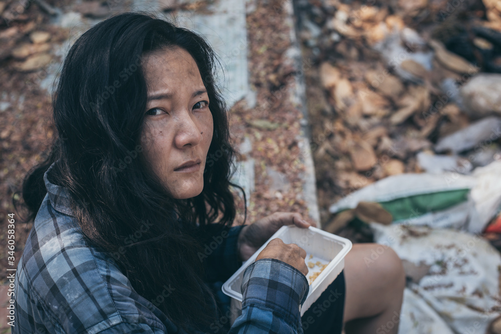 poor people,homeless or beggar begging for help sitting at dirty slum.concept for poverty hunger,human rights,donate and charity for underprivileged children in third world