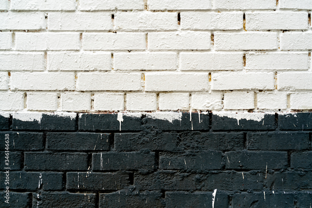 Old house brick wall. Brick wall texture. Black and white paint on the wall.