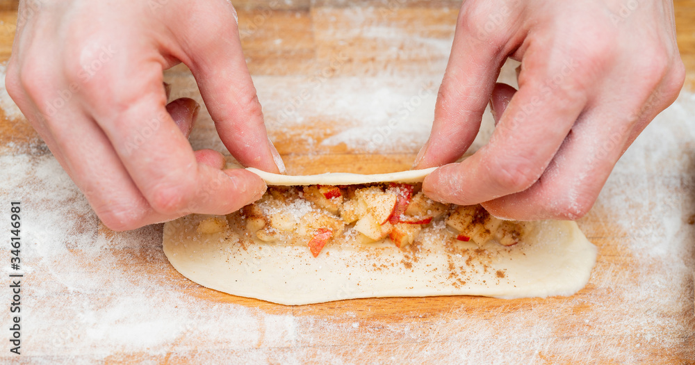 Apple pie. Dough products. Bake dessert in the kitchen at home. Homemade food recipe.