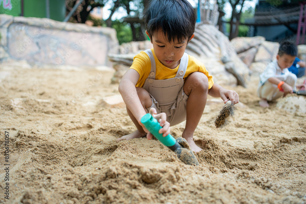 Adorable little girl on playground in sandpit