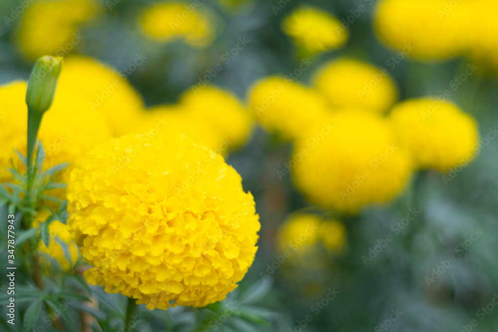 beautiful marigolds flowers bloom in the garden nature background. (Tagetes erecta, Mexican marigold, African marigold)