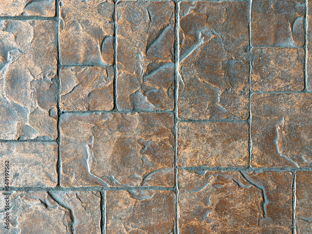 walkway is decorated with brown and dust square stone Block Bricks, giving the interior the floor of the castle with copy space. Wallpaper, background or texture.