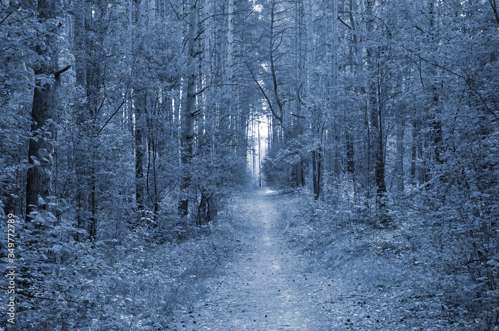 A path in a beautiful pine forest in central Europe. blueprint