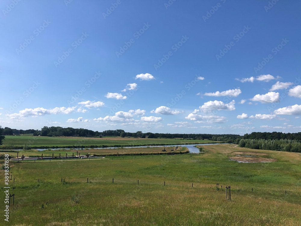 Top view from above of turqiuose swimming pool with young woman, bikini, hat and martini glass in blue water background with copy space