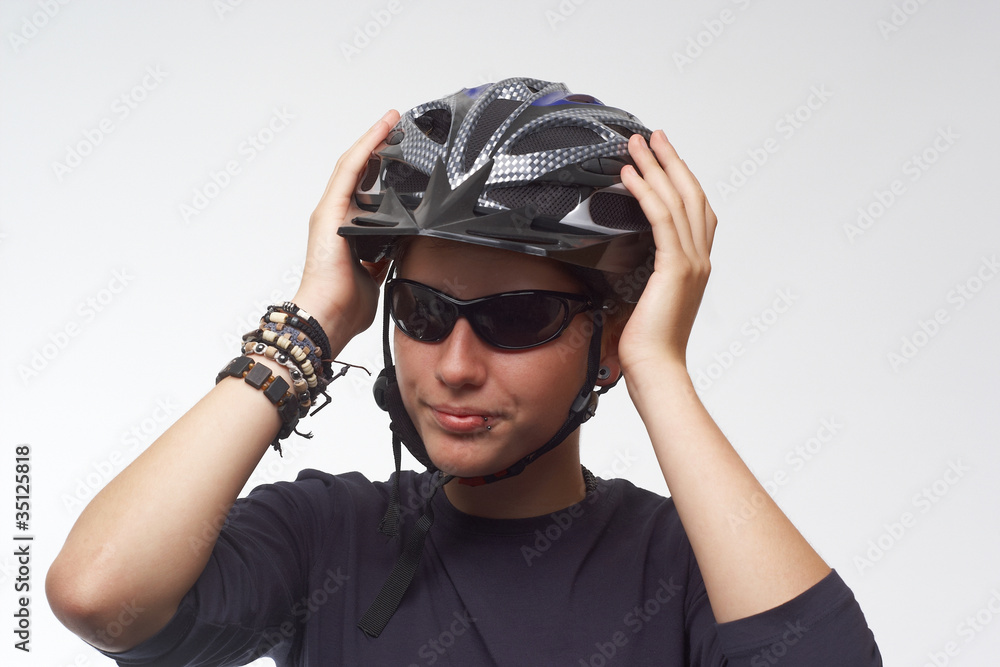 Radfahrerin mit Helm und Sonnenbrille