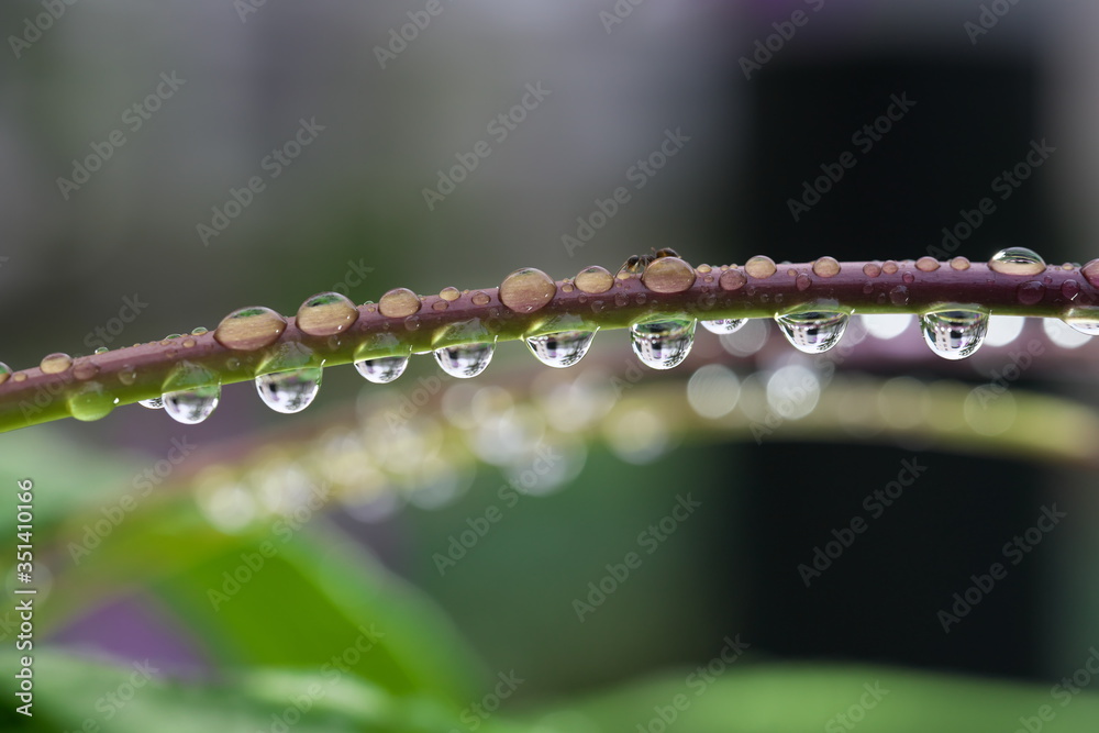 Tokyo,Japan-May 22, 2020: Water droplets on stem of Bletilla striata or hyacinth orchid or Chinese ground orchid or urn orchid