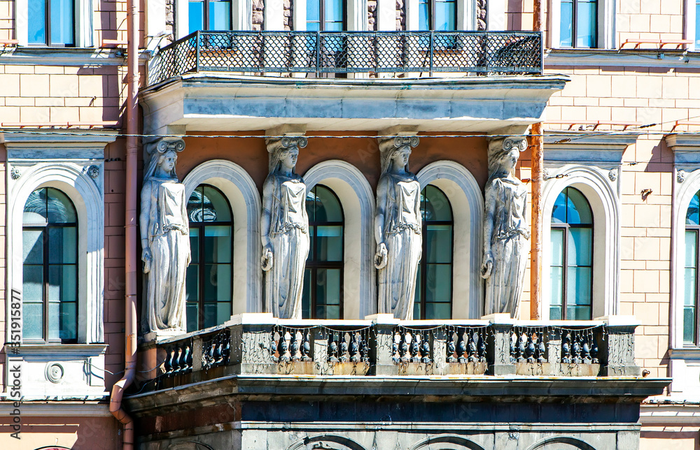 Arcade porch with caryatids. Profitable House of the Writer V.A. Vonlylarskogo. English emb. 36. St. Petersburg. Russia