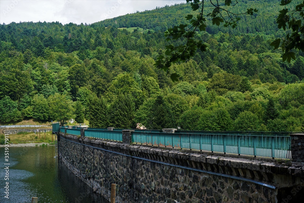 Bridge over the masonry dam at the Lac de la Lauch in the Vosges