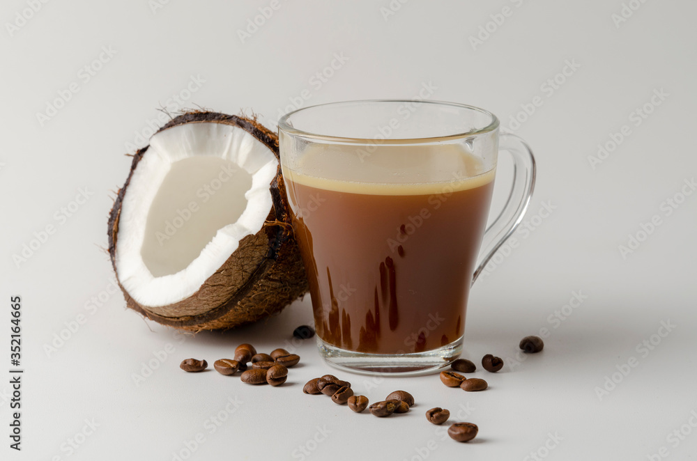 Bulletproof coffee with butter, recipe for ketogenic diet on a white background