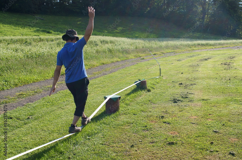 Men balancing on a slack line
