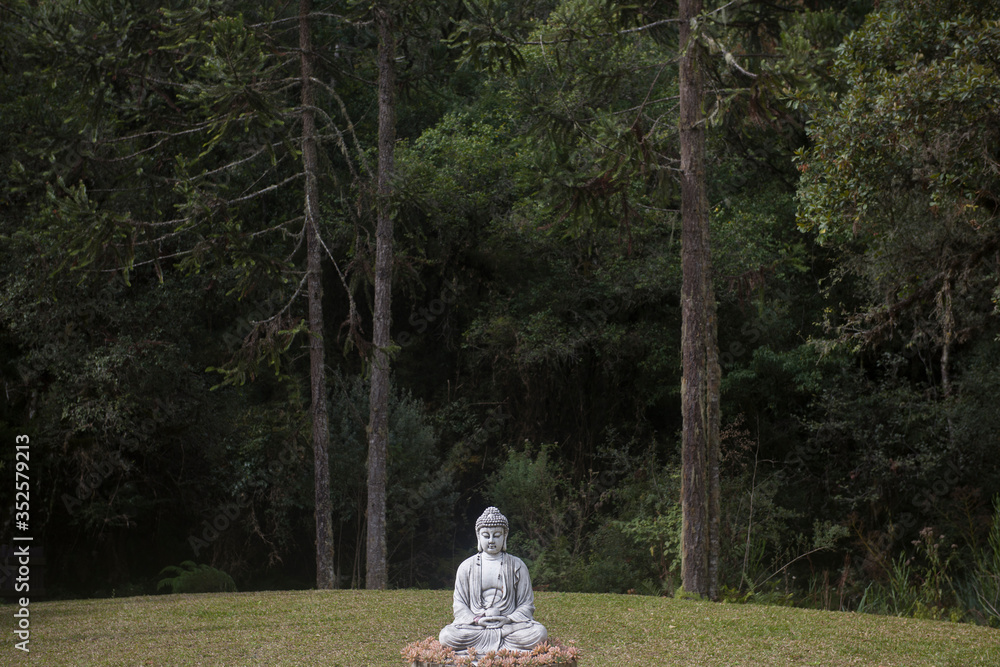 Urubici, Santa Catarina, Brazil - May 21, 2020: Buddha statue in a countryside hotel garden