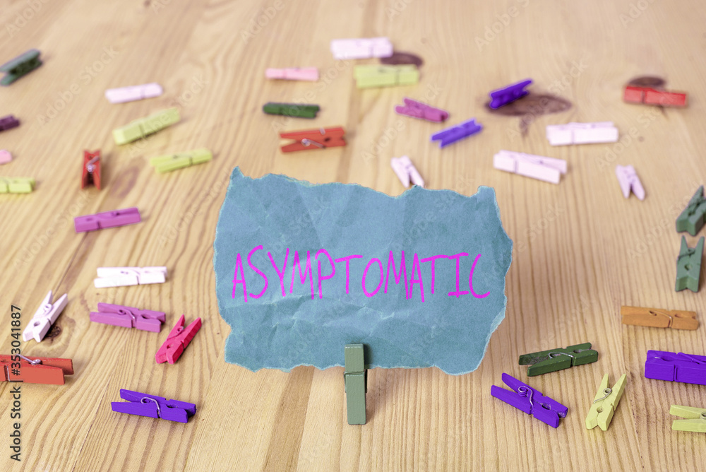Word writing text Asymptomatic. Business photo showcasing a condition or an individual producing or showing no symptoms
