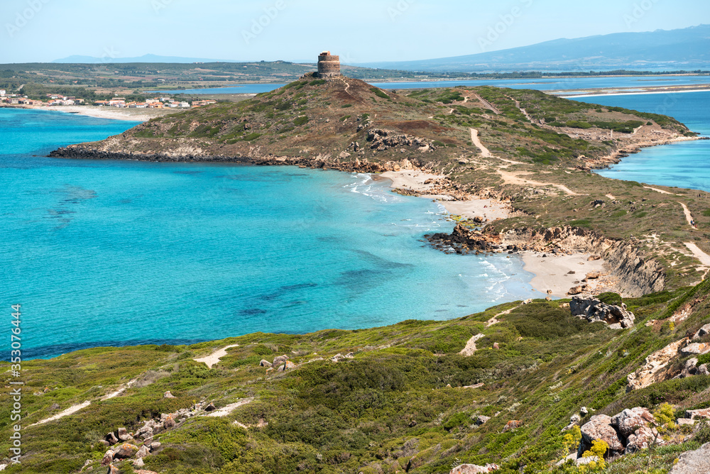 Sardegna, panorama costiero di Capo San Marco e Tharros, a Cabras, Italia