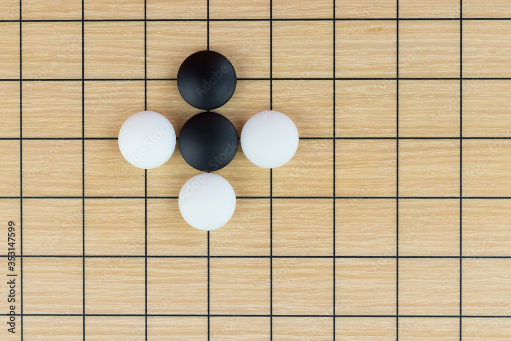 Simple training position of black and white stones on the playing field (gohan) of Chinese game go