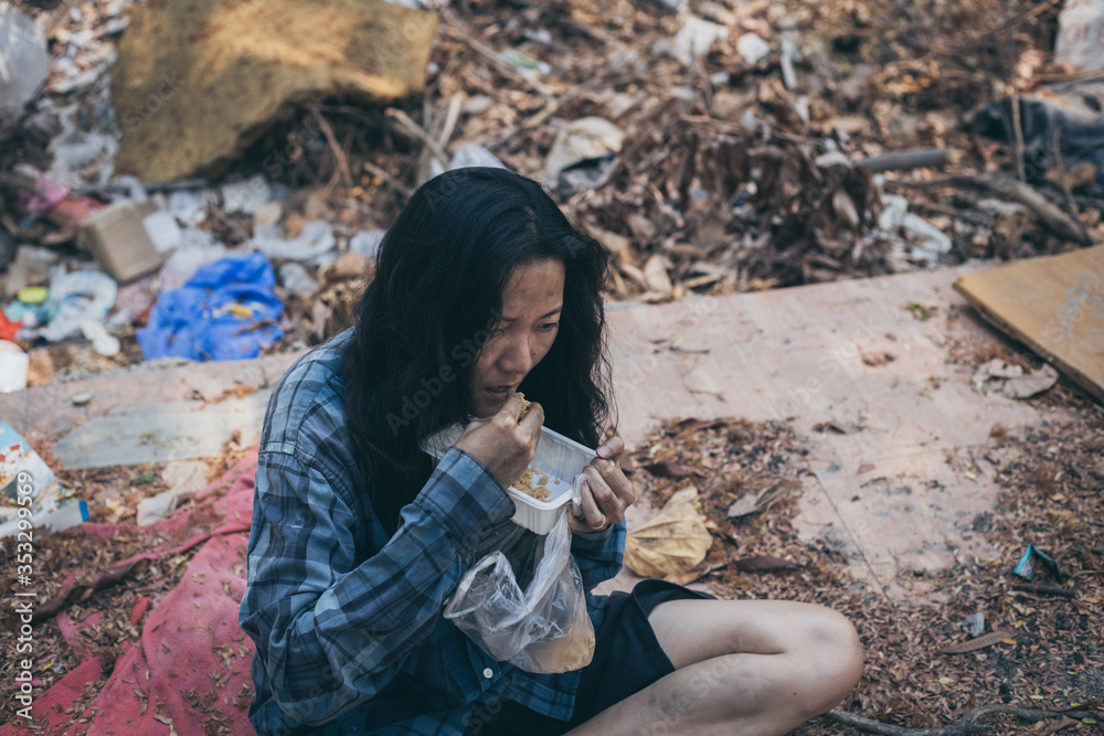 poor people,homeless or beggar begging for help sitting at dirty slum.concept for poverty hunger,human rights,donate and charity for underprivileged children in third world
