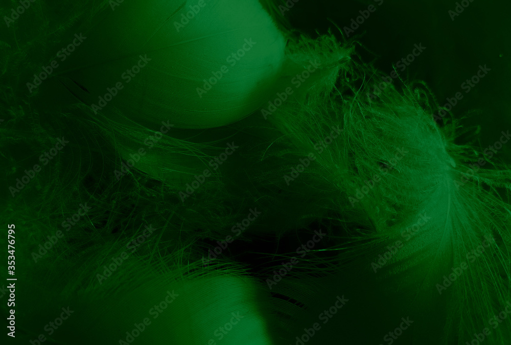 Beautiful abstract white and green feathers on black background and soft white feather texture on white pattern and green background, feather background, green banners