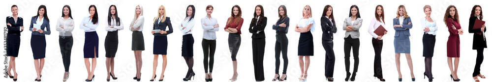 group of successful young businesswoman standing in a row