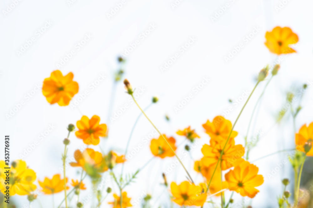 Beautiful yellow cosmos flowers blooming in flower field background in sunny day.