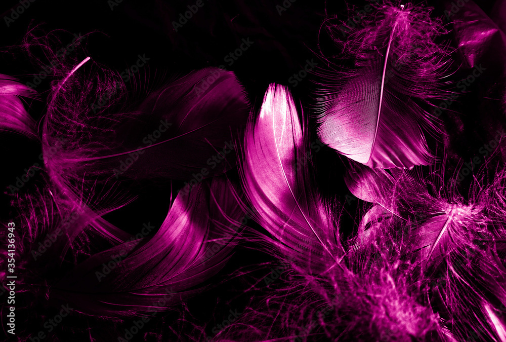 Beautiful abstract white and pink feathers on black background and soft white feather texture on pink pattern and pink background, feather background, pink banners