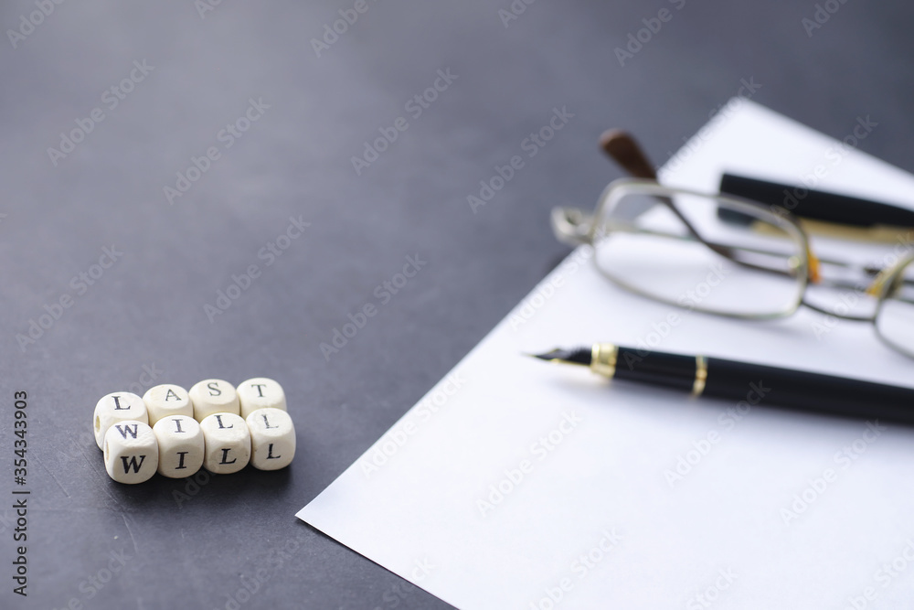 Legal concept. The procedure for writing the last will. Papers with testament on the table. Registration of the last will and testament.
