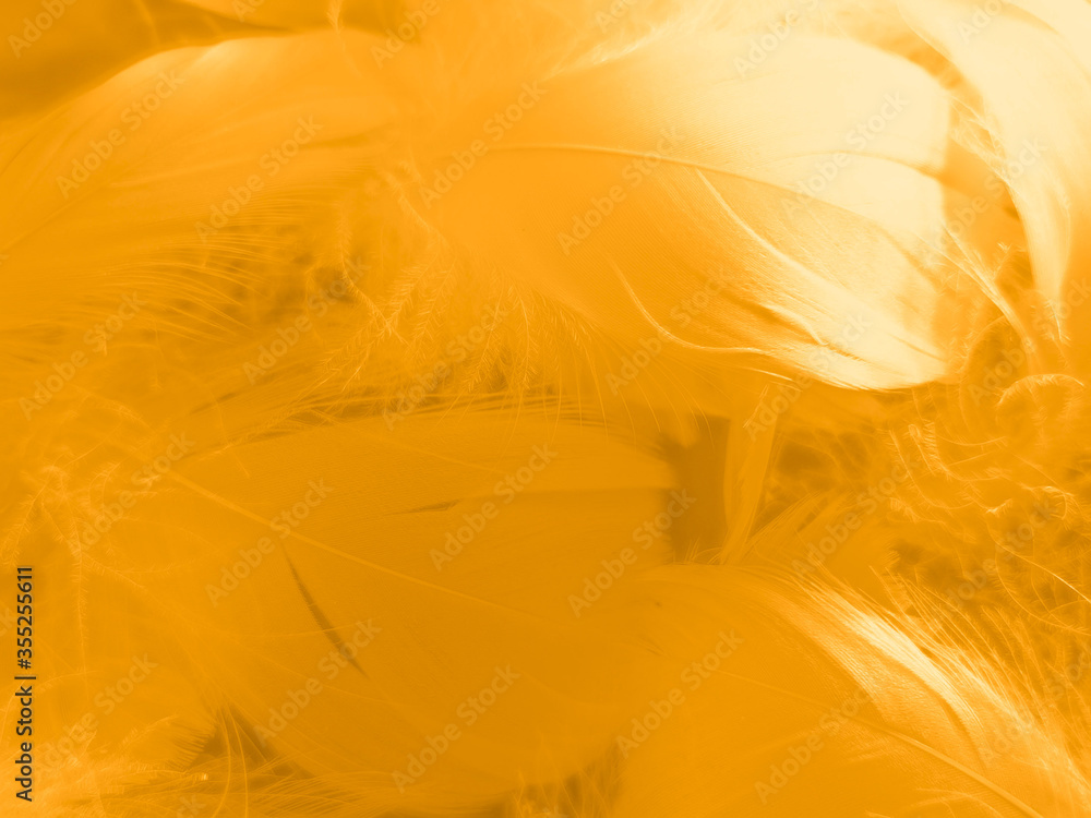 Beautiful abstract white and brown feathers on yellow background and soft yellow feather texture on white pattern and gold background, feather background, gold feathers banners