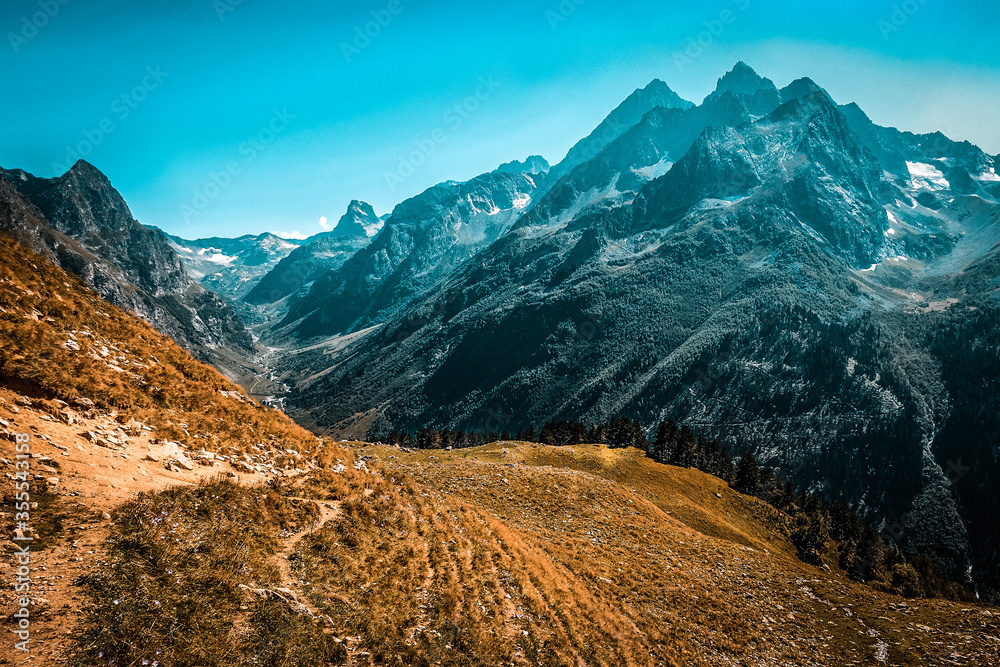 Scenic mountain scenery with cloudless skies. Wildlife. A paradise for climbers. Daylight time. wilderness