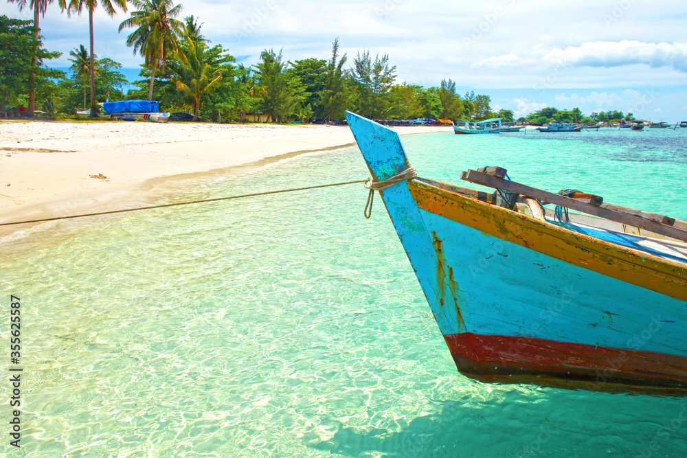 Colorful boat on a tropical island in Belitung, Indonesia.