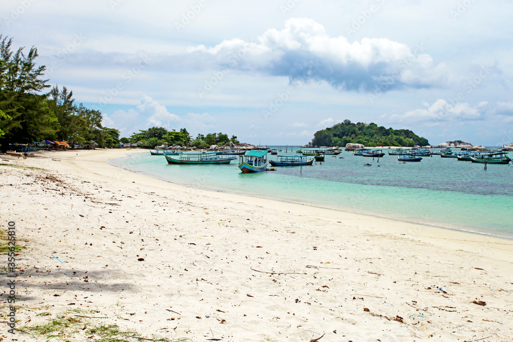 Colorful boat on a tropical island in Belitung, Indonesia.