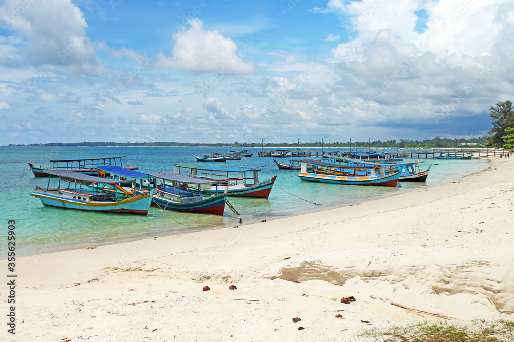 Colorful boat on a tropical island in Belitung, Indonesia.