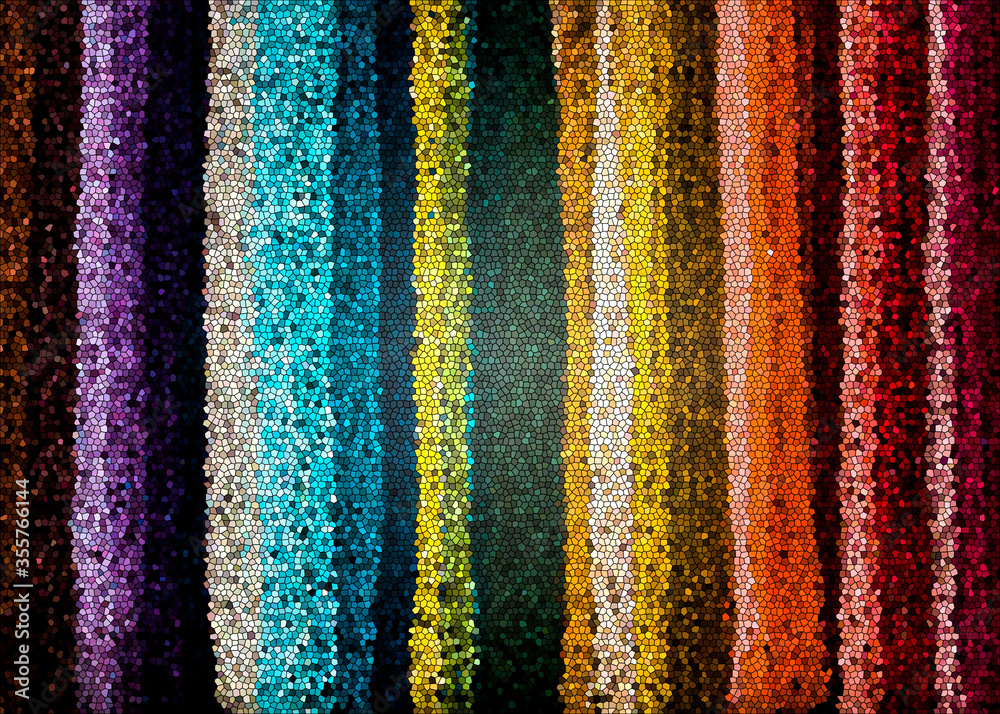 Rainbow of color hand dyed yarn transformed into stained glass mosaic