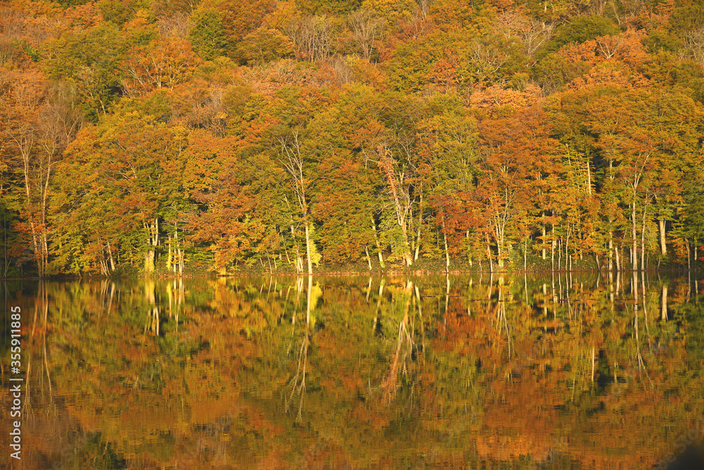 Autumn reflection from Tsuta Pond near Aomori, Tohoku region, Japan