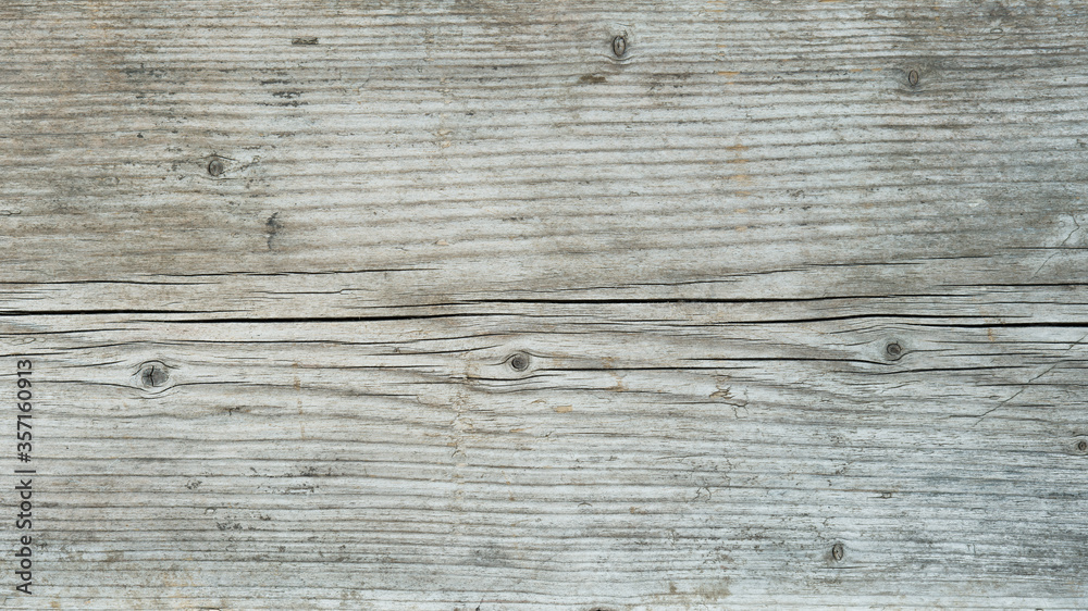 Background concept: old weathered gray wood board with knotholes and cracks.