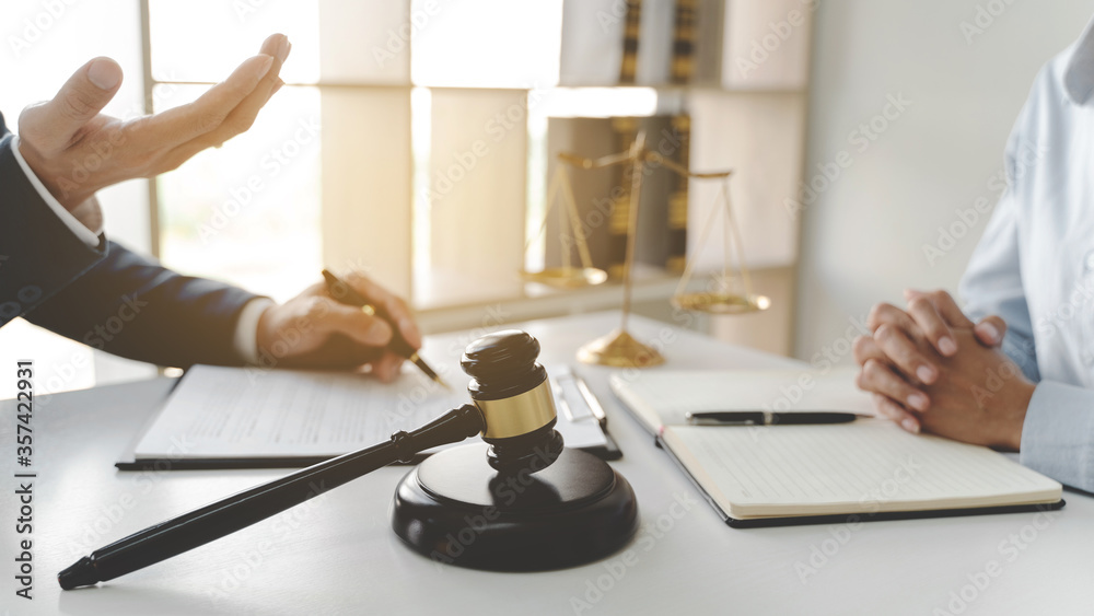 lawyer consulting with client discussing about contract.