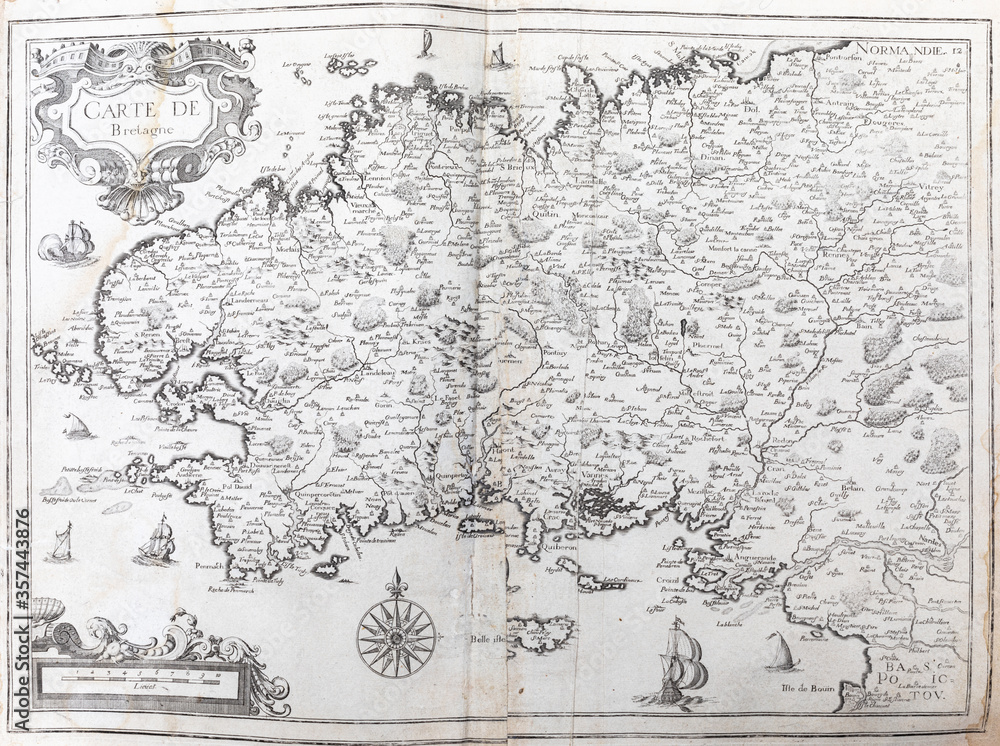 Old map of Brittany (France) - From an 1656 Atlas of Geography from P. du Val - France (Private collection)