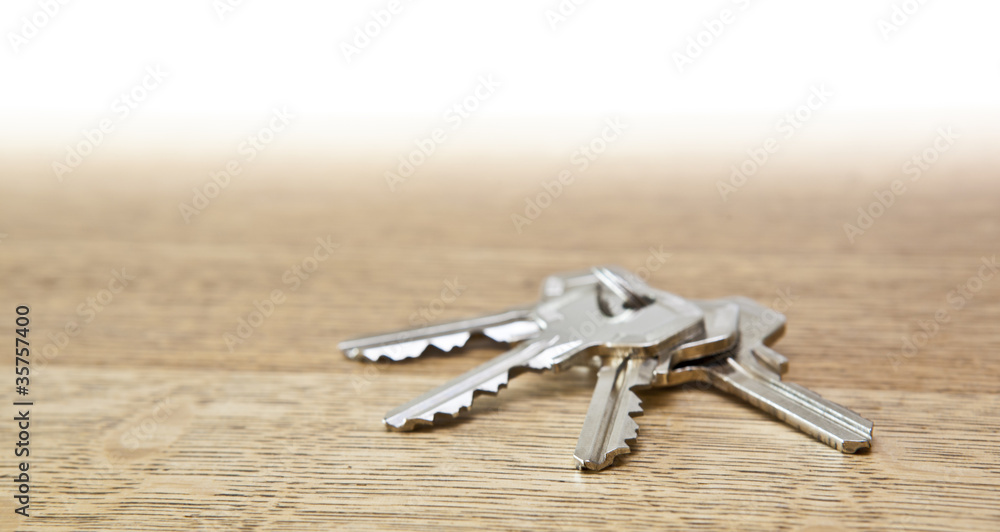 Schlüsselbund liegt auf Holztisch mit Textfeld