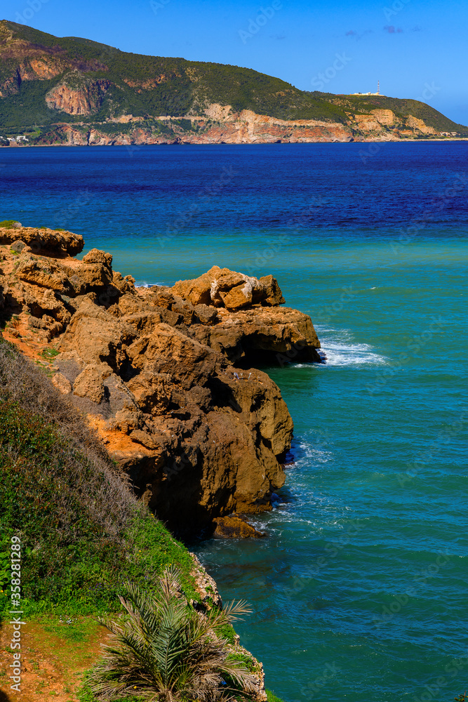 Mediterranean sea coast of Tipasa, a colonia in Roman province Mauretania Caesariensis, nowadays Algeria. UNESCO World Heritage Site