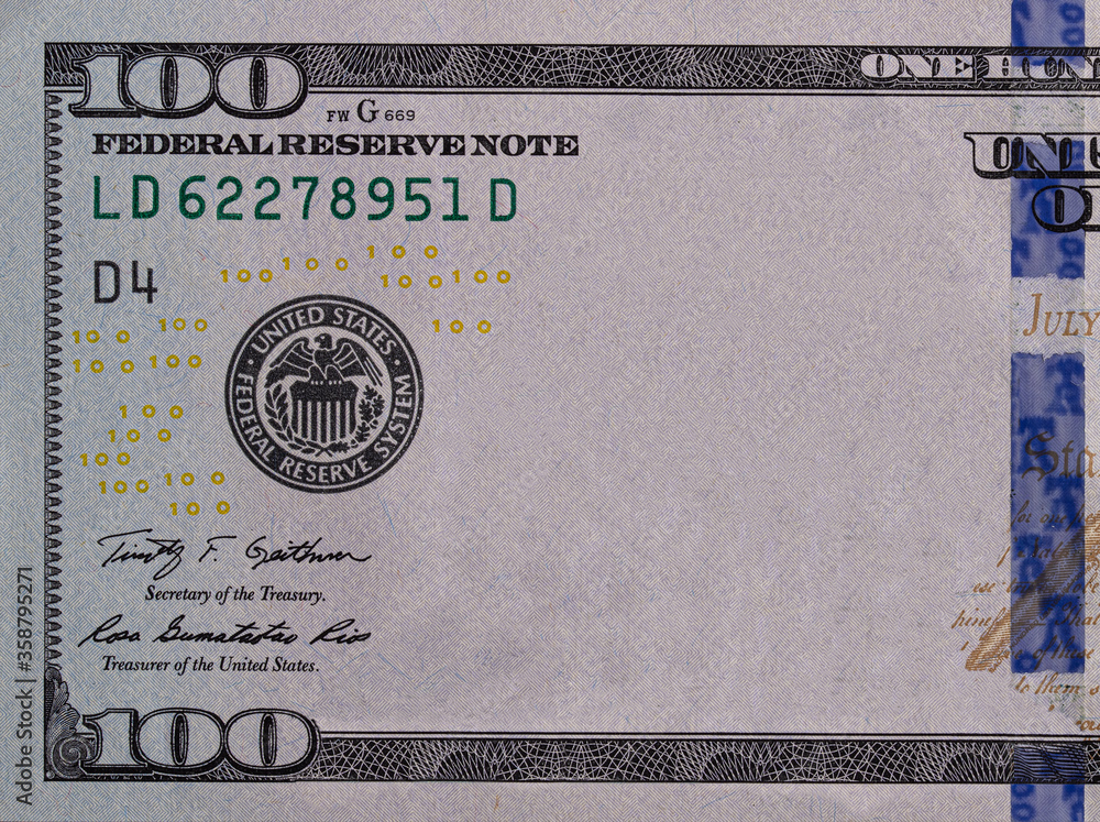 U.S. 100 dollar border with empty middle area