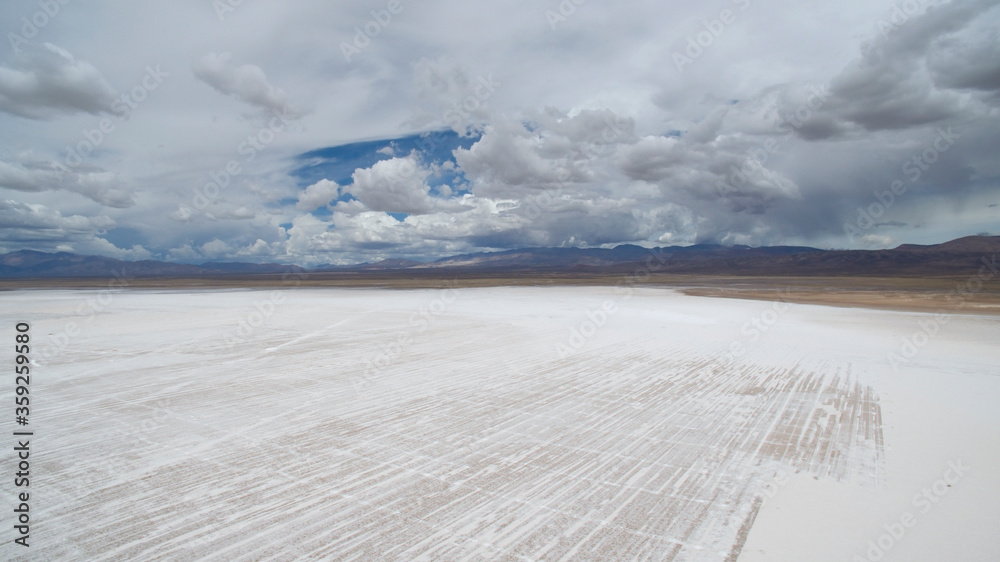 Salt mines. Aerial view of the natural salt flat, Salinas Grandes, in Jujuy, Argentina.