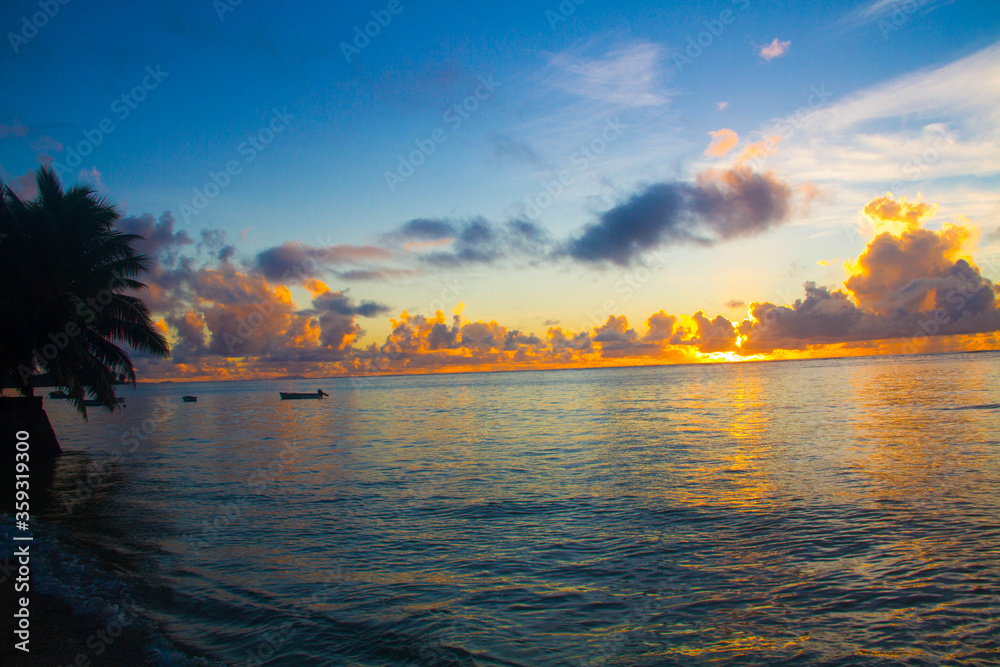 Scenic view of golden African sunset from across the ocean