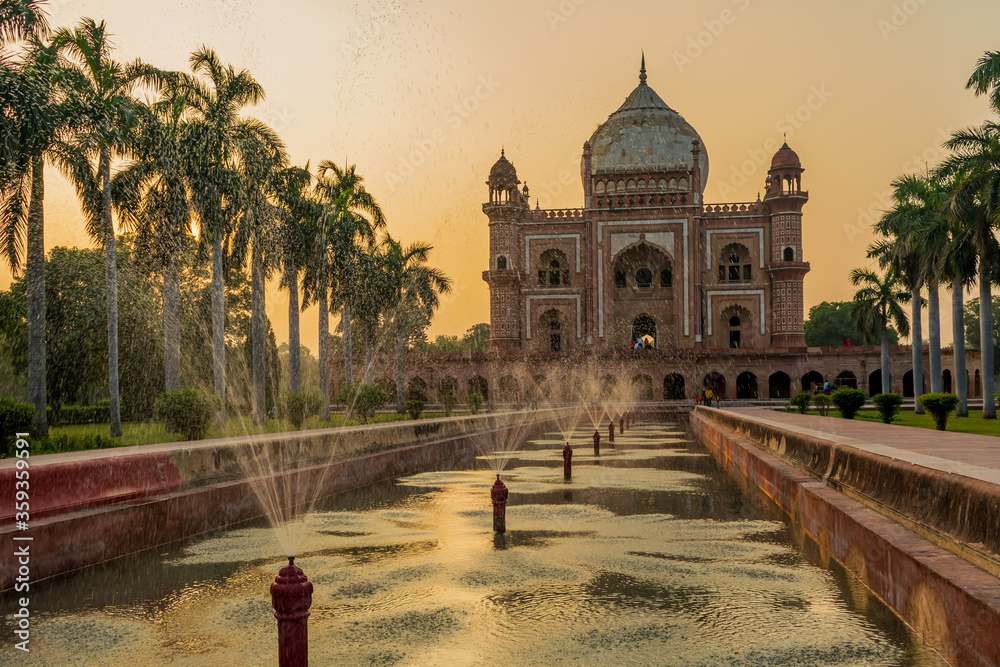 Delhi, India; Feb, 2020 : fountains in front of Safdarjung's Tomb, Delhi, India